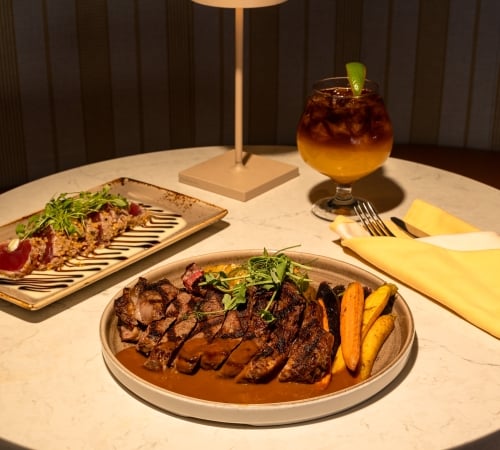 Medium-Rare 8oz Ribeye, Red Onion, Cherry Tomato, Lime & Patis Vinaigrette